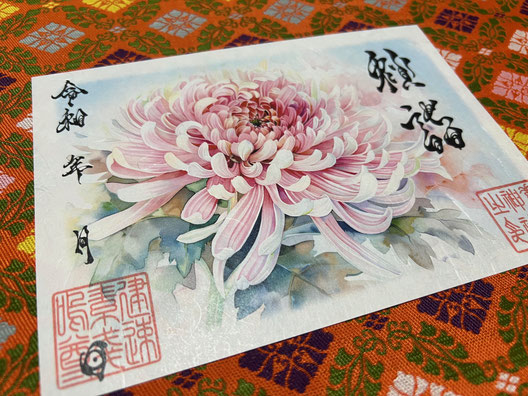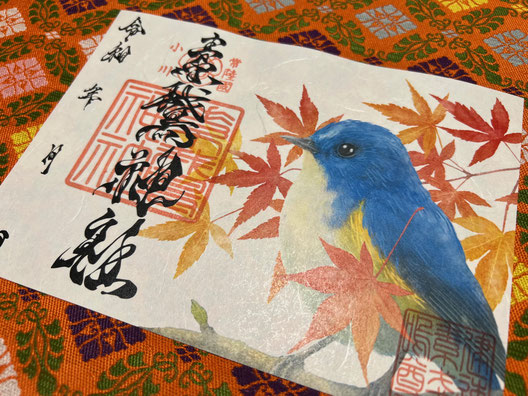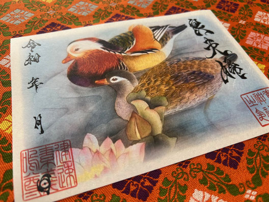 おしどり夫婦が愛らしく、秋の香りが感じられる御朱印です。